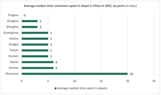 2021年全球港口集裝箱平均周轉(zhuǎn)時間