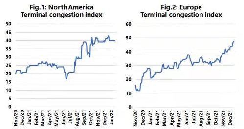 上頭顯示了Sea-Intelligence針對北美和歐洲的碼頭擁堵指數(shù)的結(jié)果。對比北美,黃金周后的小幅改善在2021年底完全逆轉(zhuǎn),并在12月30日創(chuàng)下新紀錄,盡管在薩凡納和查爾斯頓的改善推動下,1月6日再次小幅改善。就歐洲而言,丹麥分析師認為,自10月初以來,形勢一直在穩(wěn)步惡化,沒有任和改善跡象。“這意味著我們很可能會看到該貿(mào)易航線的運費繼續(xù)上漲,因為擁堵可能會對船期可靠性產(chǎn)生負面影響,從而反過來影響可用運力,”Alan Murphy評論道,他得出的結(jié)論是,所有可用數(shù)據(jù)都表明,到2022年,擁堵和瓶頸問題都在惡化,而且沒有任何改善的跡象。