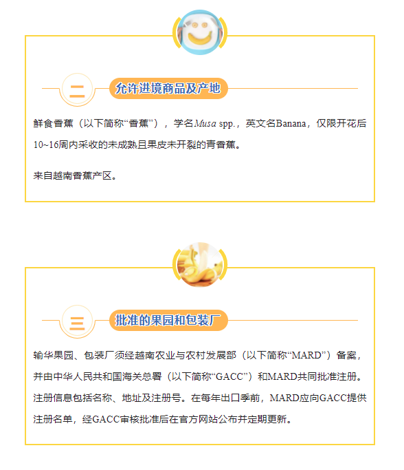 詳見:海關(guān)總署公告2022年第108號(關(guān)于進口越南鮮食香蕉植物檢疫要求的公告)