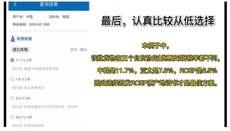 在各自貿(mào)協(xié)定中,關(guān)稅減讓是企業(yè)最直接的政策紅利。需要注意的是,同一原產(chǎn)國的同一貨物在不同的自貿(mào)協(xié)定下所適用的稅率和原產(chǎn)地規(guī)則可能不同。廣大企業(yè)可針對自身出口貨物,比較不同自貿(mào)協(xié)定下的協(xié)定稅率,選擇簽發(fā)原產(chǎn)地證書類別。