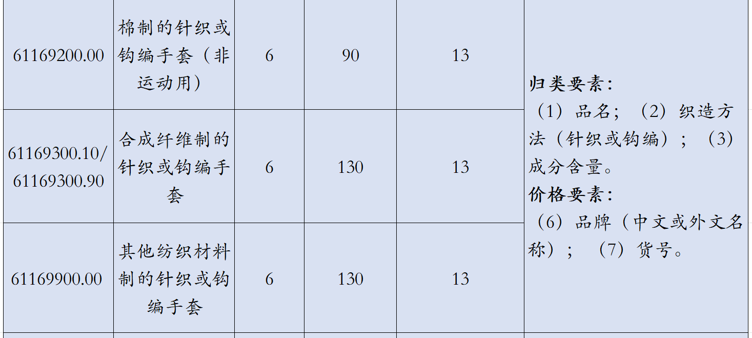 手套可以在勞動(dòng)過程中對(duì)手部進(jìn)行保護(hù),應(yīng)用非常廣泛,根據(jù)不同工作場(chǎng)景有不同保護(hù)和幫助工作的手套,比如防滑耐磨手套、絕緣手套、焊接手套、耐油耐腐蝕手套、無塵手套和消防手套等,其制作材料主要有皮革、棉線、PVC、橡膠等,可能涉及的歸類及規(guī)范申報(bào)要素如下: