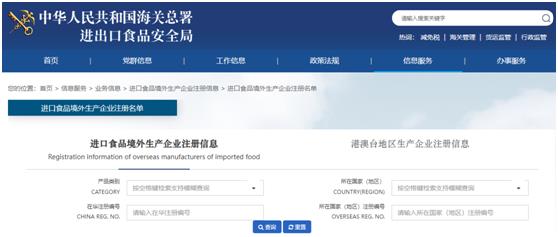 根據已于今年1月1日起實施的《中華人民共和國進口食品境外生產企業(yè)注冊管理規(guī)定》(中華人民共和國海關總署第248號令)相關要求,向中國境內出口食品的境外生產、加工、貯存企業(yè)應當獲得海關總署注冊,其中18類產品(肉與肉制品、腸衣、水產品、乳品、燕窩與燕窩制品、蜂產品、蛋與蛋制品、食用油脂和油料、包餡面食、食用谷物、谷物制粉工業(yè)產品和麥芽、保鮮和脫水蔬菜以及干豆、調味料、堅果與籽類、干果、未烘焙的咖啡豆與可可豆、特殊膳食食品、保健食品)需由所在國家(地區(qū))主管當局向海關總署推薦注冊。
